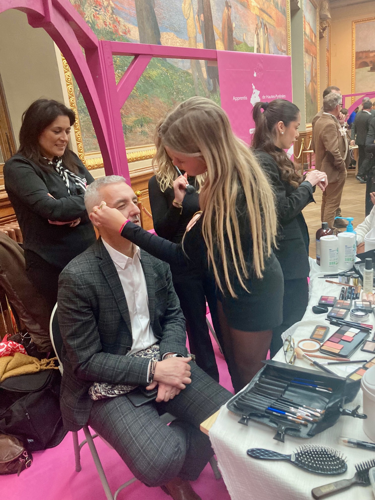 Effectivement, des élèves/apprentis en formation esthétique et coiffure ont maquillé et coiffé les participants à l'événement.