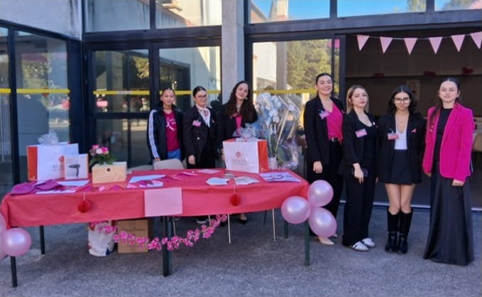 Dans le cadre de leur formation, les étudiantes du BTS Esthétique, Cosmétique, Parfumerie option Management, accompagnés des élèves de la section Coiffure, Esthétique et Mode du lycée professionnel Reffye de Tarbes, se sont mobilisés autour d’un projet d’engagement citoyen : la lutte contre le cancer du sein, à l’occasion d’Octobre Rose.